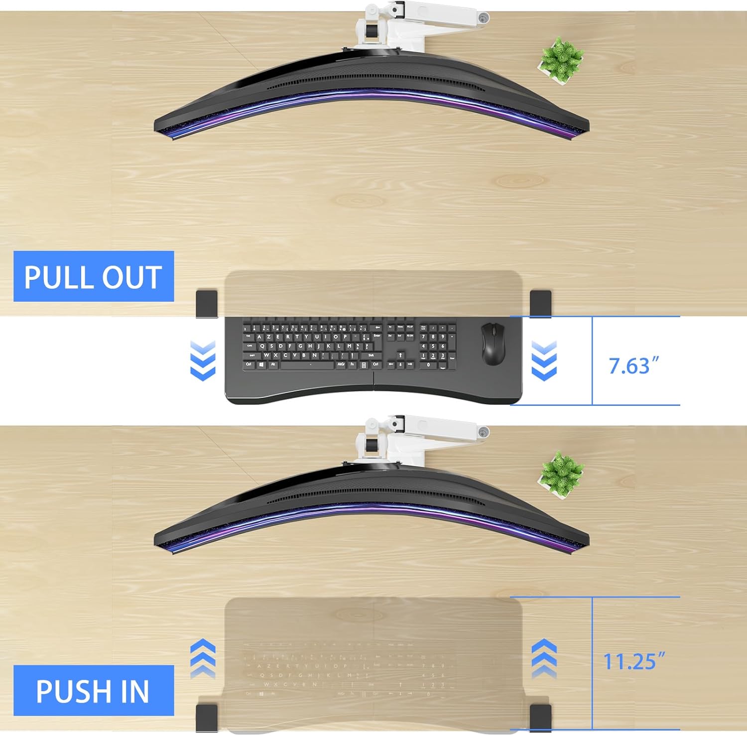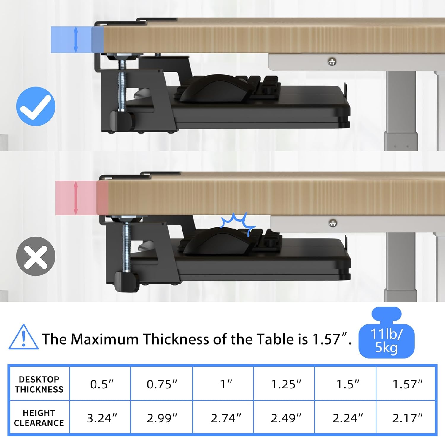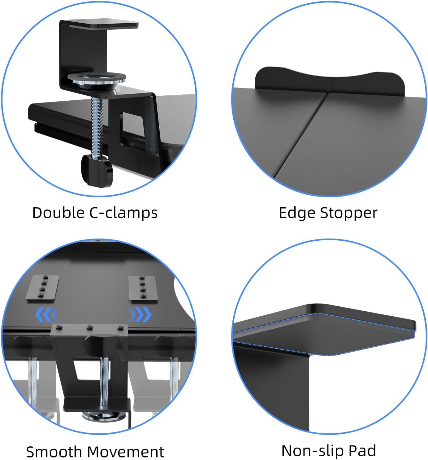 The Keyboard Tray Under Desk Pull Out is a convenient and space-saving solution for keeping your keyboard and mouse within reach while maximizing your desk space. The C Clamp Mount securely attaches the tray underneath your desk, allowing you to easily slide out the platform for comfortable typing and mouse usage.